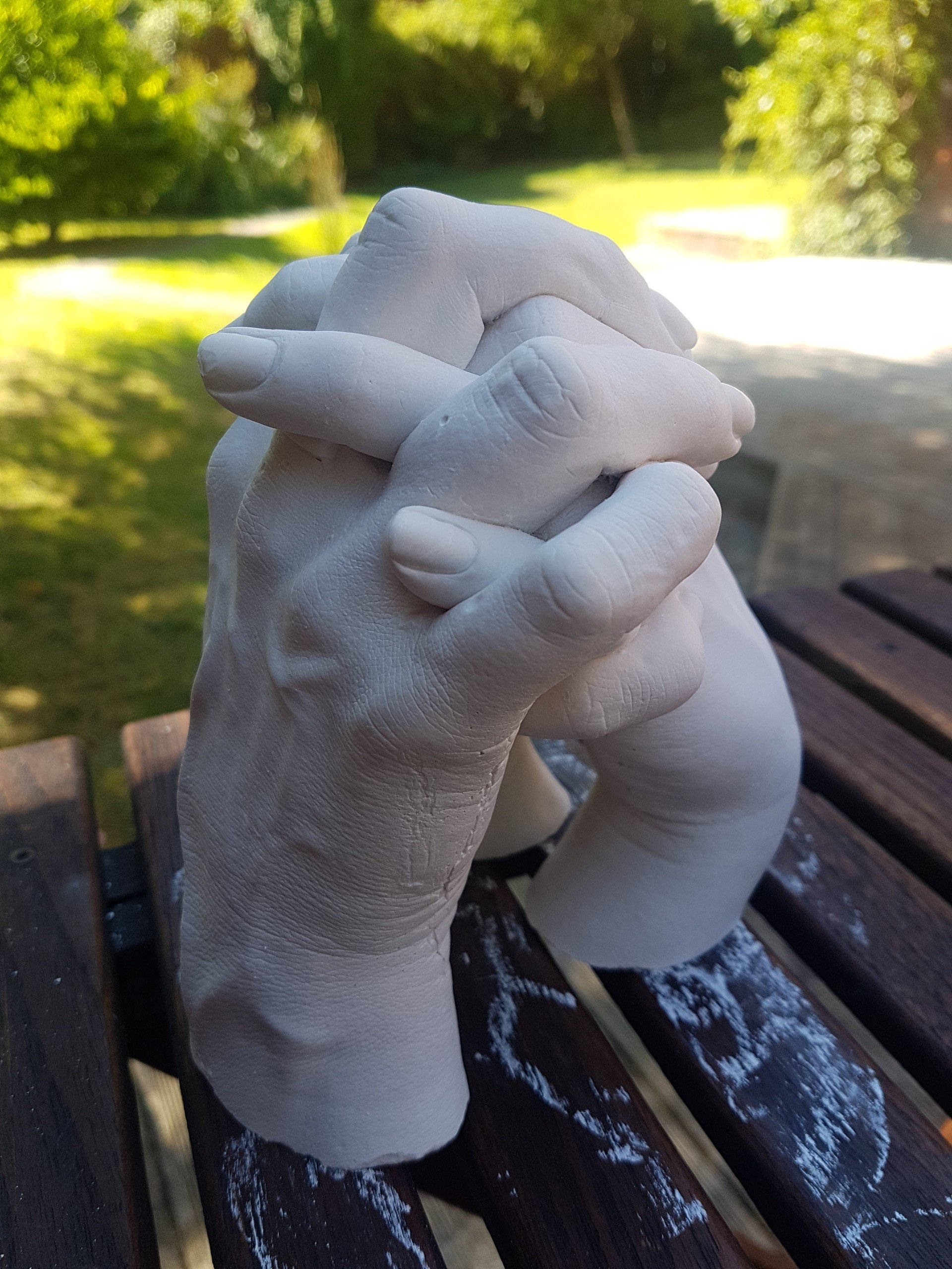 The 3D casting is a simple process and involves gently immersing each hand or foot into a lukewarm syrupy material, the consistency of thick custard, which sets within 10-15 seconds to form a rubbery mould from which the hand or the foot is easily removed.We use a high quality, hypoallergenic moulding powder that gives a fine cast and an excellent result, which allows us to capture all those precious minute details that you will treasure forever.Your personal casting appointment will usually take between 45-60 minutes; this includes a short consultation, time to take the casts, and to choose your frame and finish.All our frames are handmade to order for each of your chosen cast combinations, and the finished framed piece is usually ready for collection within 4-6 weeks.